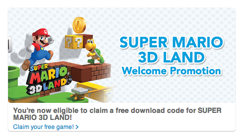 Jos olet hankkinut tai saanut lahjaksi Nintendon koneen sekä mahdollisesti yhden alla olevista peleistä, niin pienellä kikkailulla on mahdollista saada ilmainen Mario-peli. Lisätietoja löytyy Nintendon Super Mario 3D Land Welcome Promotion –sivuilta.