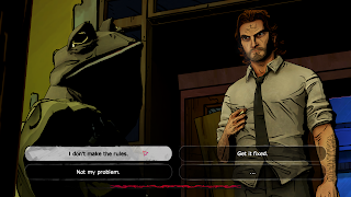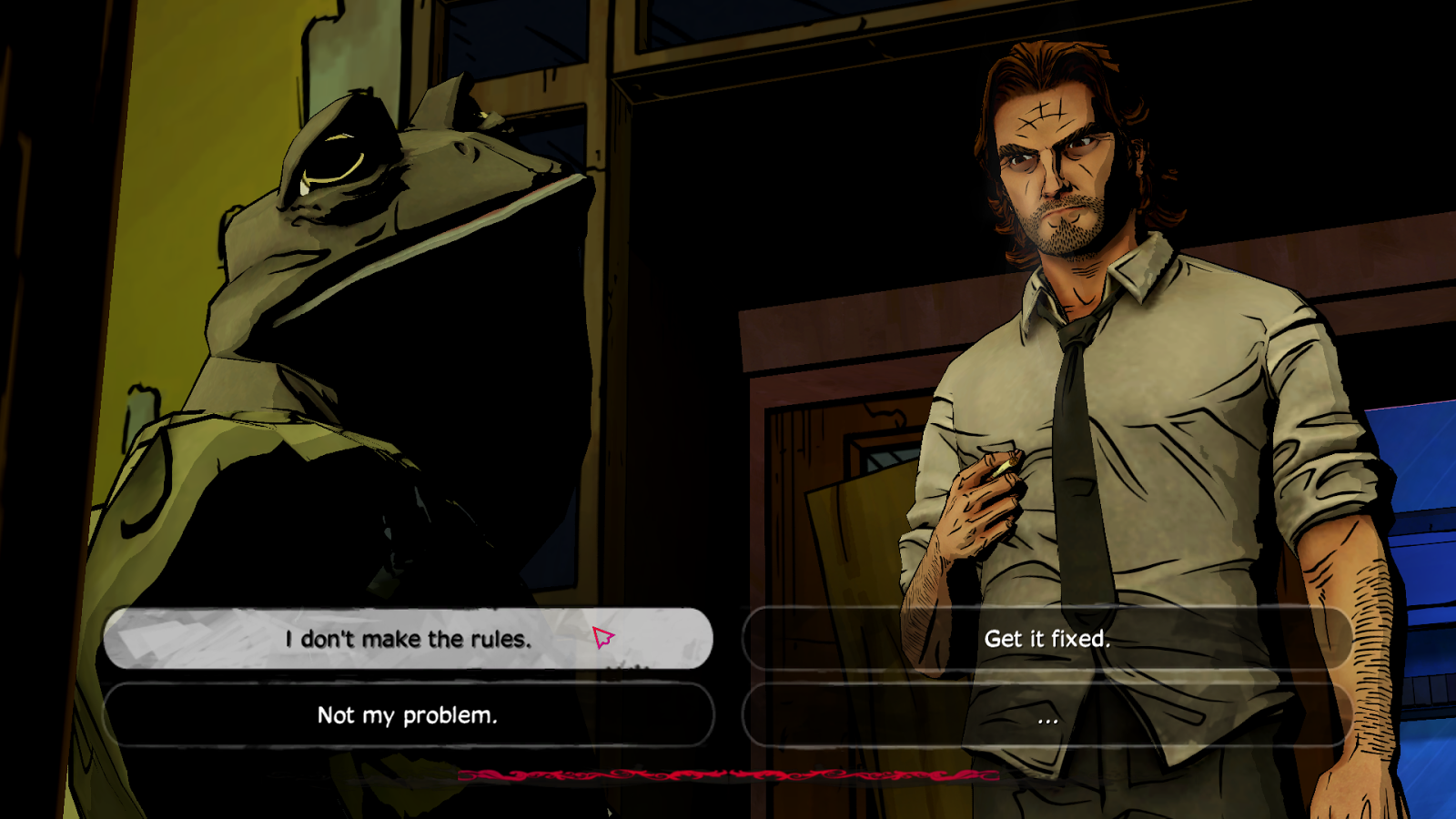Hahmot ovat muutenkin erinomaisia ja tutuista saduista on ammennettu hienoja persoonia. Sarjakuvat eivät ole minulle tuttuja, joten en osaa sanoa kuinka paljon luovuutta Telltale on käyttänyt hahmoihin, mutta miltä suhdekriisin partaalla oleva Kaunotar ja Hirviö tai murhamysteereissä auttava Lumikki kuulostavat? Hahmot eivät ole mitenkään tuttuihin lastensatuihin yhteydessä muuten kuin nimeltä, mutta ovat kuitenkin jollain oudolla tavalla tunnistettavissa.