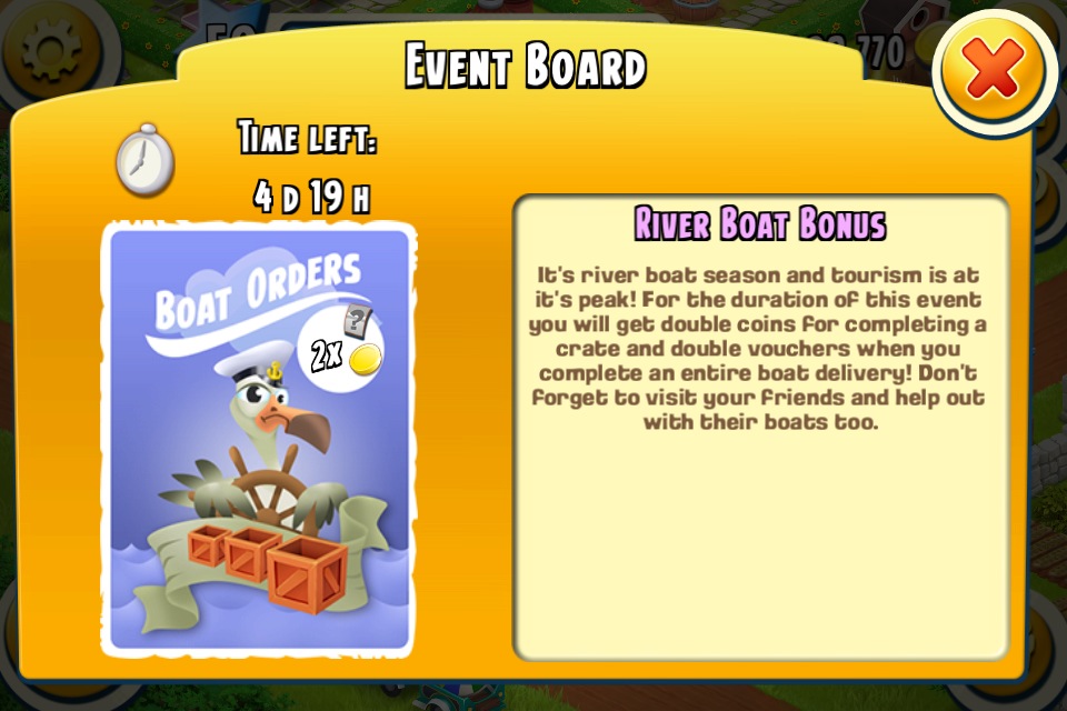 HayDay on kovasti uudistunut viimeaikoina. Ensin iso päivitys toi mukanaan kalastuksen omalla alueellaan, jonne pääsee pientä venettä koskettamalla. Uusimpana päivityksenä tapahtumataulu kertoo muutaman päivän kestävästä erikoistapahtumasta, jolloin saa esimerkiksi tuplarahat kaikista rekkatilauksista tai laivan lasteista. Uutuuksia on esitelty kuvakaappausten kanssa alla. Saa nähdä kuinka kauan tämä innostus taas jatkuu vai näenkö tällä kertaa jopa talvisen HayDay farmin. 🙂 Kesäpossut ja muut eläimet ovat ainakin varsin hauskan näköisiä.