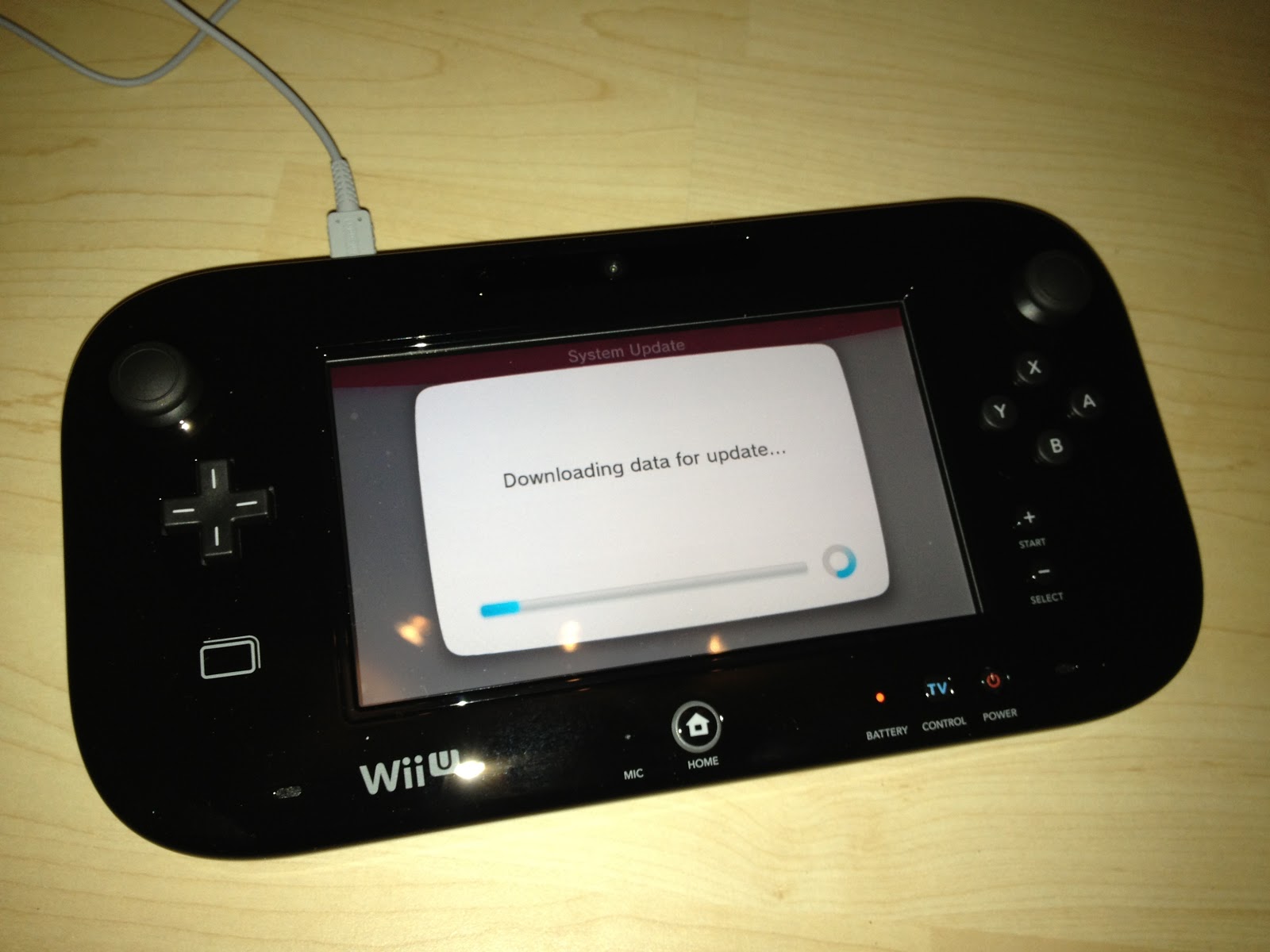 Wii U kysyy aluksi alkuasetukset ja verkkoasetukset. Tämän jälkeen alkoi reilu tunnin kestävä päivitysprosessi. Iso päivitys on julkaistu jo heti julkaisupäivänä ja se kannattanee ladata. Varsinaisesti sen tuomia hyötyjä en osaa sanoa, mutta itselläni on koneissa aina uusin firmis asennettuna. Modausta kun en ole PS2:n jälkeen harrastanut.