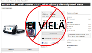 Nintendon uusi konsoli Wii U julkaistiin hiljattain myös Euroopassa. Olin jo hyvissä ajoin varannut koneen, koska se kiinnosti ja edelleen kiinnostaa. Harmi vain että Nintendo ei ole tuottanut koneita läheskään tarpeeksi. Valkoista Basic konetta ei kukaan järkevä edes ajattele hankkivansa. Minulla oli varauksessa hieman kalliimpi Premium paketti, jossa tulee musta kone ja pientä lisäherkkua. Sain myös vahvistuksen, että tilaus on noudettavissa, mutta enpä hakenut. Peruutin tilauksen, koska olisi täytynyt 7 päivän aikana hakea.