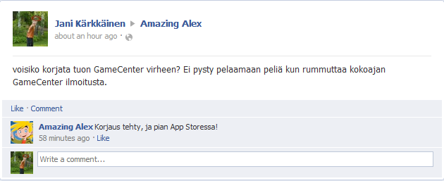Angry Birds kehittäjä Rovio julkisti tänään uuden pelinsä Amazing Alex. Aamulla heti tulikin kyseinen peli iPhonelle ostettua. Sääli että Rovio ei vieläkään ole tehnyt mahdolliseksi pelien pelaamisen sekä iPhonella että iPadilla. Tai periaatteessa on mutta eri versiot joutuu ostamaan. Liekö mahdollista edes jatkaa toisella laitteella pelattua peliä toisella?