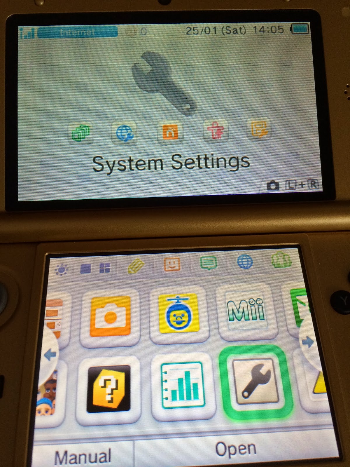 Käyttöliittymän ulkoasu on mielestäni myös varsin luotaantyöntävä. Se näyttää hieman sekavalta ja jälkeen jääneeltä. Konsolin ostopäivänä Nintendo julkaisi päivityksen, jolla sentään Wii U:lla luotu Nintendo ID:n sai liitettyä osaksi 3DS XL –konsolia.